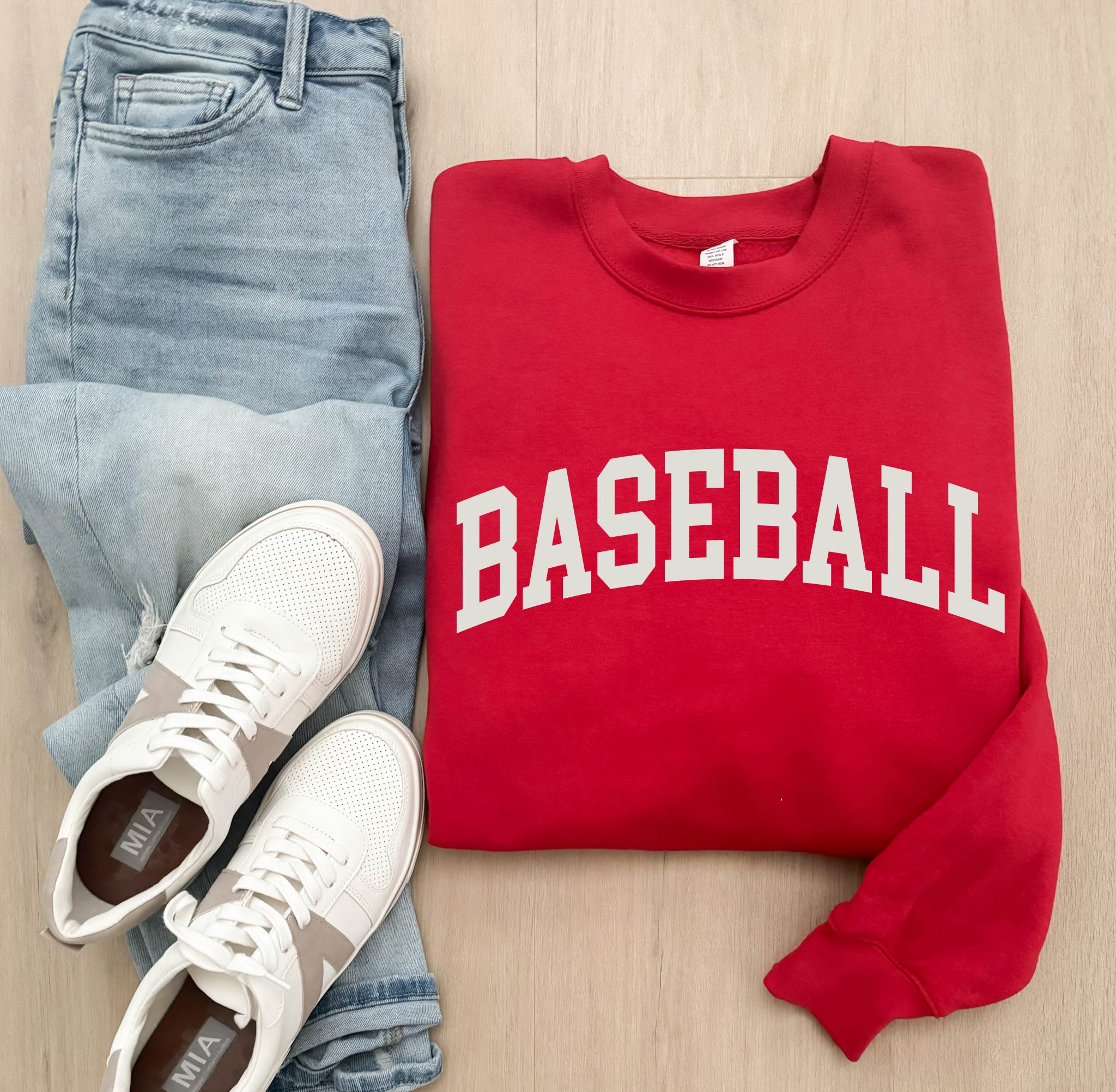 Baseball arch fleece sweatshirt.